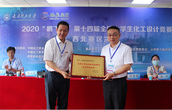 山西鹏飞集团有限公司为本次大赛提供了独家赞助。为表彰鹏飞集团长期以来对我校人才培养和创新创业教育的支持,进一步促进校企合作,学校授予鹏飞集团有限公司“支持大学生创新创业教育突出贡献企业”荣誉称号,刘润祥在开幕式上为鹏飞集团授牌。
