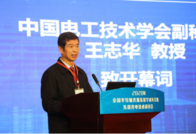 中国电工技术学会副秘书长王志华致开幕词,他介绍了学会在工程教育专业认证、团体标准等方面的工作,并提出解放思想,加强合作与交流的建议,为大家应对产业革命提供了新的启发。