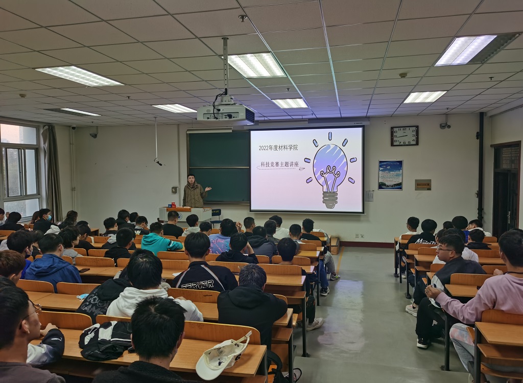 2022年10月24日下午,材料科学与工程学院组织材料成型及控制工程专业2021级全体学生在迎西校区逸夫楼303开展科技竞赛主题讲座,标志着学院2022年度“博‘材’多学 ‘竞’创未来”学科竞赛系列讲座开启,学院党委副书记郑芳莅临指导,成型专业全体学生参加讲座,讲座由学院科技竞赛工作专员郑瑞强主持。