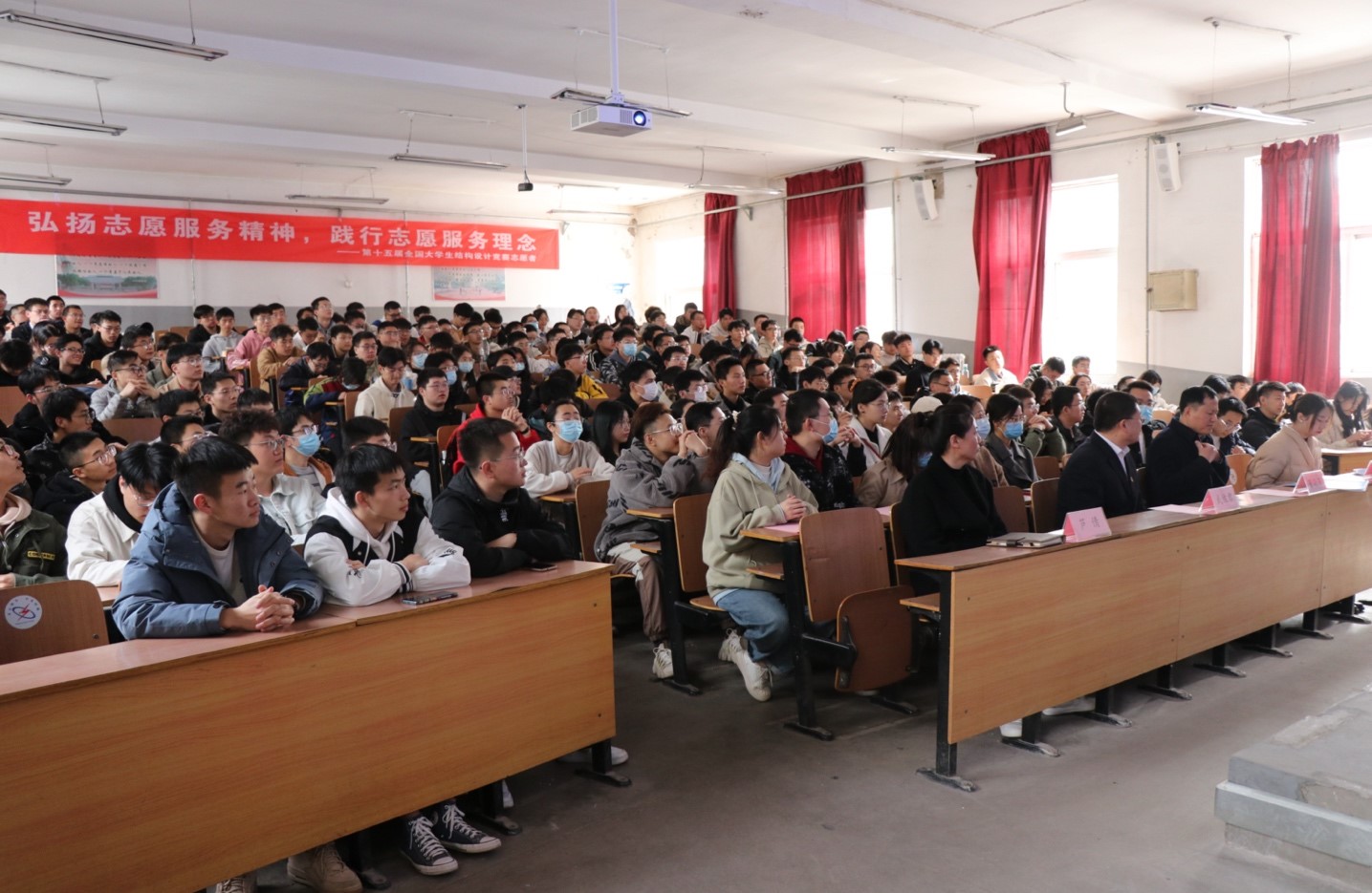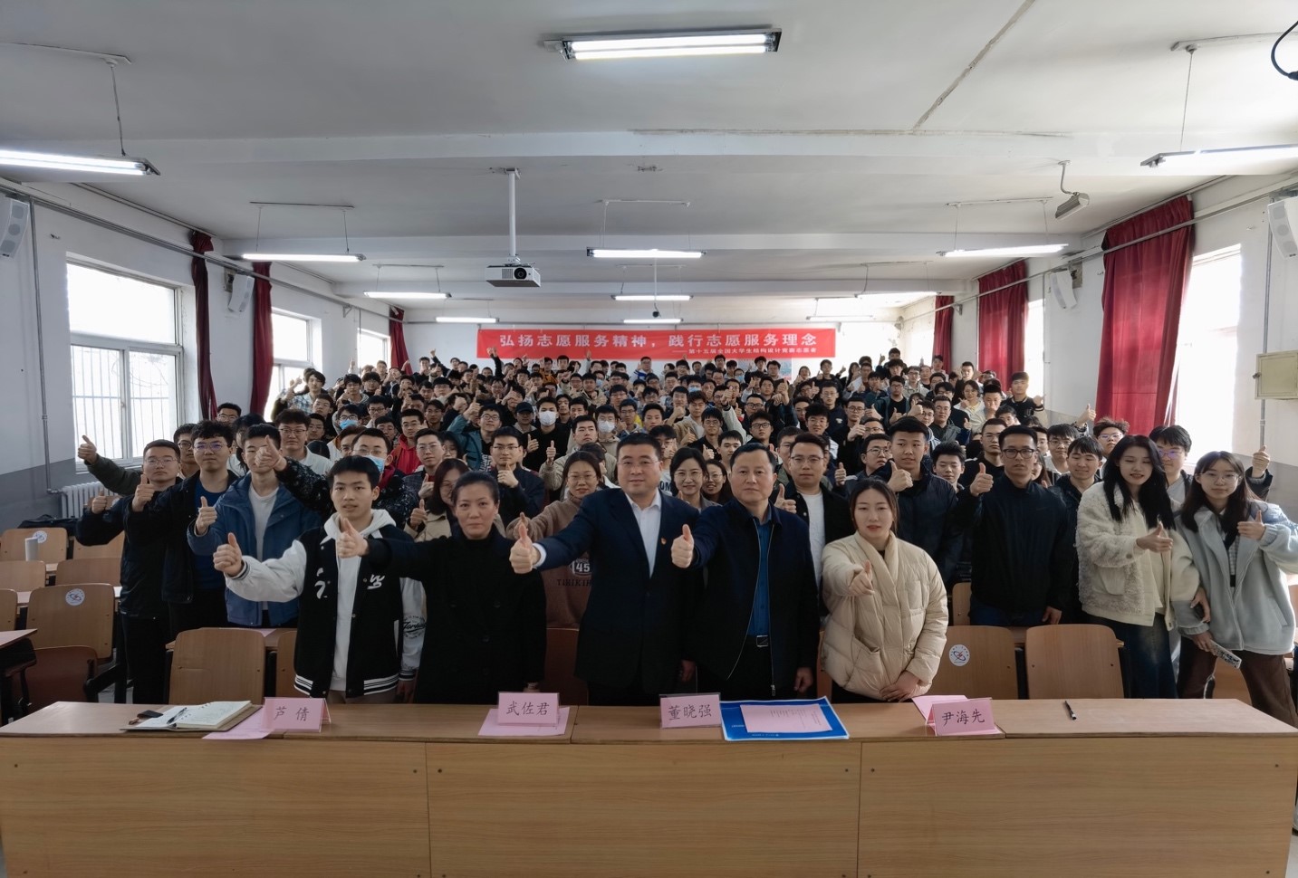 第十五届全国大学生结构设计竞赛志愿服务自报名开启以来,同学们积极响应,踊跃参加,经过层层选拔,共有255人成功入围,组成九个工作组,承担赛场组织、开闭幕式、现场安保、高校接待、宣传拍摄、会务食宿等志愿任务。在大赛即将到来之际,全体志愿者将以此次动员大会为号角,不负重托、全力以赴,以强烈的责任感、使命感和荣誉感坚决做好大赛各项志愿服务工作,用实际行动贡献志愿力量,以蓬勃朝气绽放青春光芒。