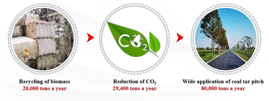 项目简介:项目对煤沥青和生物质进行回收再利用,通过高温裂解、化学改性和物理共混等手段制成可用于沥青路面建设的环保沥青,在有效提高上述两种工农业生产副产品利用率、拓宽其应用场景的同时,还在满足路面同等使用要求的前提下降低了造价。在当前“碳中和、碳达峰”的全球趋势下,环保沥青作为一种绿色环保的公路交通基础设施建筑材料,实现了降低碳排放和促进循环经济的目标,为未来的可持续筑路材料提供了解决方案和发展方向。