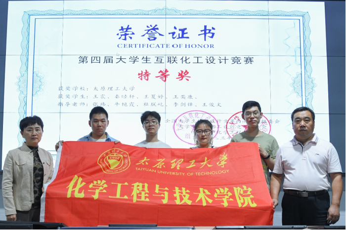 8月5日,在第四届大学生互联化工设计竞赛,我校化工2020级本科生王震、秦睦轩、王奕康、王夏婷组成的“我想腈腈”队,在张玮、牛艳霞、杜朕屹、李剑锋、王俊文老师的指导下,荣获特等奖。