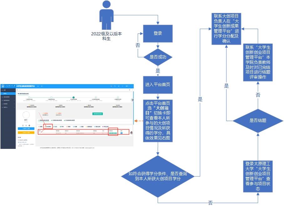 如符合获得学分条件,但系统内未查询到本人所获大学生创新项目学分,请按以下流程操作: