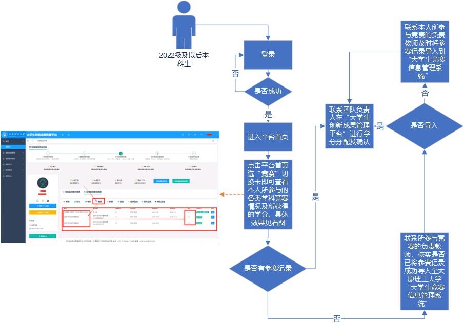 如符合获得学分条件,但系统内未查询到本人所获某项学科竞赛学分,请按以下流程操作: